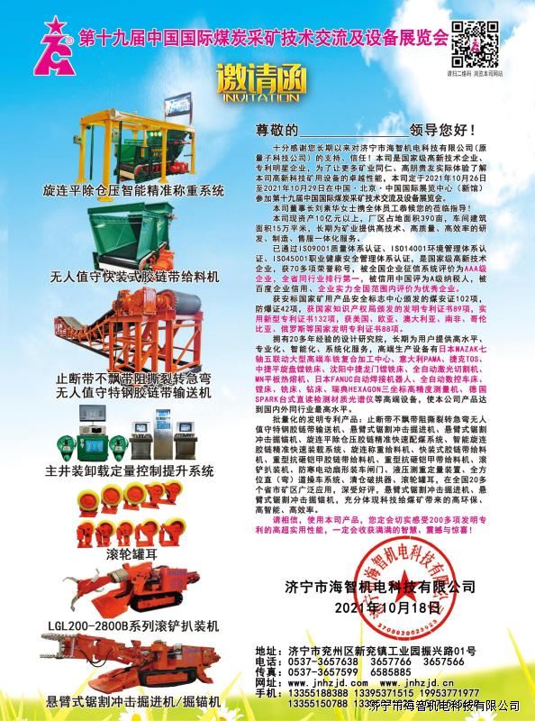 邀請函-第十九屆中國國際煤炭采礦技術(shù)交流及設(shè)備展覽會(huì)